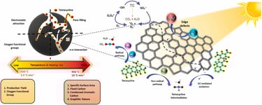 Application of persulfate-assisted graphitic carbon, derived through pyrolysis of waste biomass, driven by visible light, for the removal of tetracycline from water: Mechanisms and performance influencing parameters